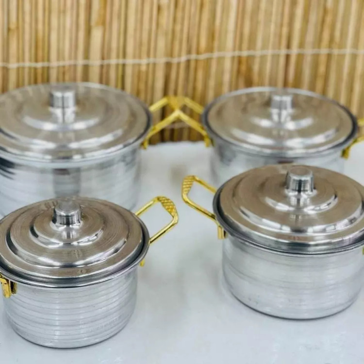 سرویس قابلمه شفق دسته طلایی 📏سایز 14-16-18-20 وزن 1242 گرم 🌈تک رنگ ❇️ جنس آلومینیوم