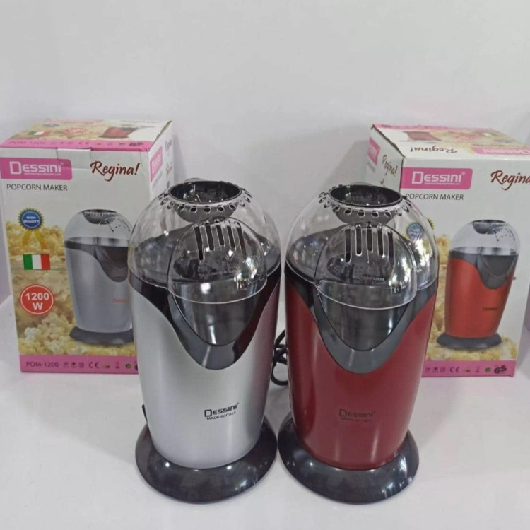 دستگاه پاپ کورن ساز (پفیلا ساز) دسینی مدل:pom_1200 رنگ زرشکی، سیلور جنس اصلی و اورجینال توان 1200 وات رژیمی و بدون روغن موتور قوی وکم صدا تمیزکردن آسان