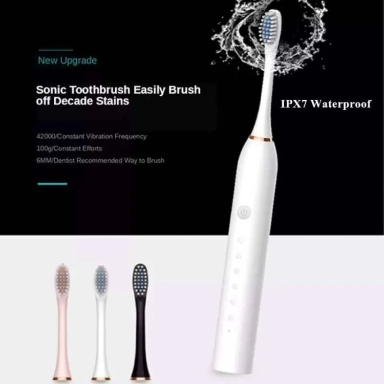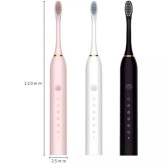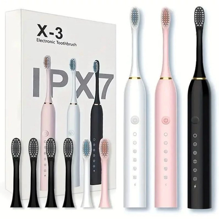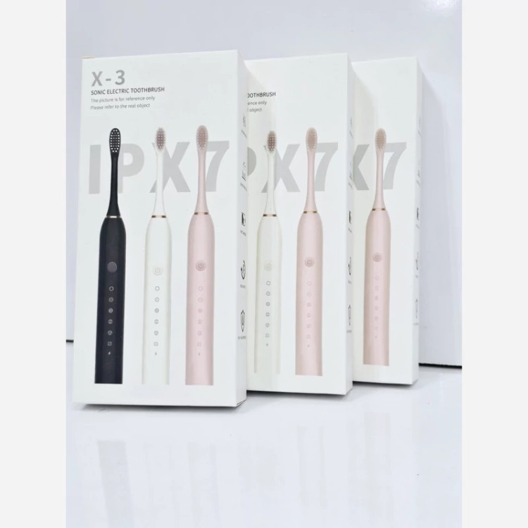 مسواک برقی x-3 دارای4 سری قابل تعویض ۶حالته ماندگاری شارژ بالا در 3رنگ صورتی،مشکی ،سفید