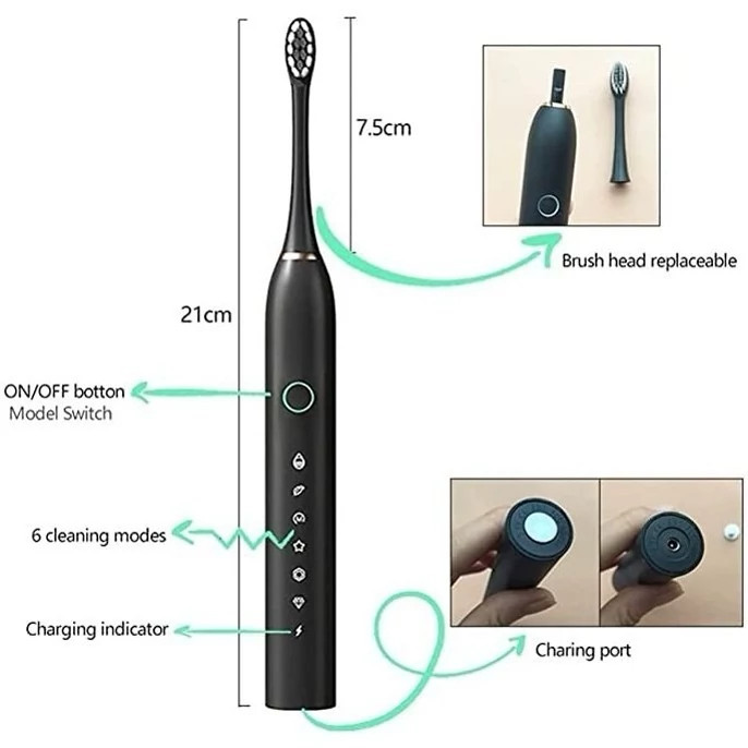 6 حالت مختلف پاککنندگی: این مسواک با 6 مود متفاوت، متناسب با نیازهای مختلف طراحی شده است. از حالت تمیزکننده روزانه گرفته تا حالت سفیدکننده، ماساژ لثه و پاکسازی عمیق، این مسواک همهی انتظارات شما را برآورده میکند.
