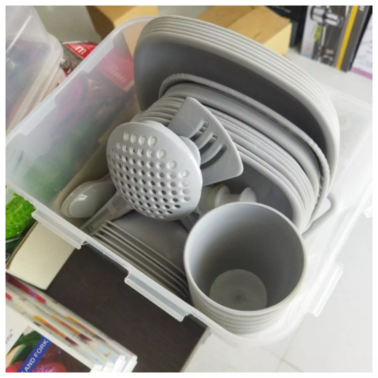 سرویس ظرف مسافرتی ۷۰ پارچه کاوه پلاست Kave plast حمل و جابه جایی ظرف در مسافرت، یکی از آن کارهایی است که نیاز به دقت فراوان دارد زیرا امکان شکستن ظروف خانگی در صندوق عقب خودرو بسیار است. علاوه بر آن انواع ظرف و ظروف، مانند لیوان، بشقاب و غیره در تعداد بالا، جای زیادی را اشغال می کنند. به همین خاطر ما ترجیح می دهیم ظروفی را با خود حمل کنیم که جنس نشکن داشته و دارای بسته بندی مناسب برای حمل باشند که علاوه بر محافظت از آن ها، حجم اشغال شده راکاهش بدهد. سرویس ظرف مسافرتی ۷۰ پارچه کاوه پلاست Kave plast، یکی از بهترین گزینه ها برای استفاده در مسافرت است. این سرویس شامل ظروفی پلاستیکی و کم حجم است که در یک بسته بندی کوچک جمع شده اند. مواد اولیه ی به کار رفته در این محصول باکیفیت است و بسته بندی نشکن و مقاومی دارد همچنین تعدد و تنوع ظروف موجود در این سرویس بسیار کامل است و شامل: ۶ بشقاب بزرگ\u002F ۶ پیش دستی\u002F ۶ بشقاب خورشت خوری\u002F ۶ قاشق\u002F ۶ چنگال\u002F ۶ چاقو\u002F ۶ قاشق مرباخوری\u002F ۶ لیوان\u002F ۶ کاسه ماست خوری\u002F ۱ فلفل پاچ\u002F ۱ نمک پاچ\u002F ۱ سبد کوچک\u002F ۱ رنده\u002F ۲ کفگیر\u002F ۱ چنگال بزرگ\u002F ۱ قاشق بزرگ\u002F ۱ ملاقه\u002F ۱ شیر یدک فلاسک، می باشد که همین تعداد و تنوع بالا آن را برای مصارف مختلف مناسب و کامل نموده است.