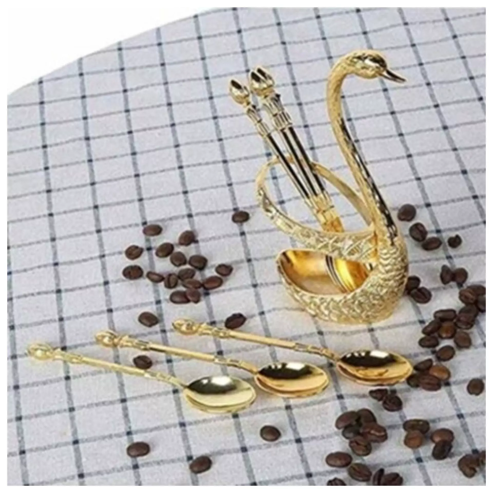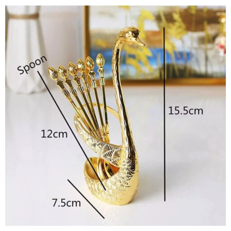 قاشق چای خوری طرح قو 🏜به همراه استند زیبا 🏜رنگ ثابت 🏜جنس زاماک 🏜بدون خوردگی و رنگ زدگی 🏜از برخورد مواد شیمیایی و قوی با سطح قاشق هاجلوگیری شود ست قاشق مدل قو شامل 6 عدد قاشق چای خوری پایه قو برای نگهداری از آن طراحی شده است . این محصول مناسب برای پذیرایی و در سینی سرو قرار میگیرد . این محصول از جنس برنج روکش شده میباشد، و مناسب برای دکوراتیو و استفاده برای پذیرایی است. طول هر قاشق حدود 11 سانتی متر میباشد.در رنگ طلایی موجود است سازنده چین PRcاصلی